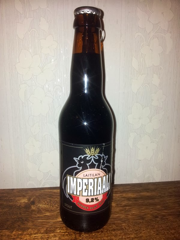 Yleistä: Laitilan Wirvoitusjuomatehtaan valmistama Imperial Stout nimeltään Imperiaali Stout on alun perin valmistettu panimo 15 –vuotisjuhlaolueksi vuonna 2010. Vasta tänä vuonna pääsin ensimmäistä kertaa maistamaan kyseistä olutta, kun tällä oluella on ollut aina melko huono saatavuus. Imperiaali tuli Alkon valikoimiin tuossa tämän vuoden elokuussa, joten tuolle huonolle saatavuudelle on tullut parannusta.
