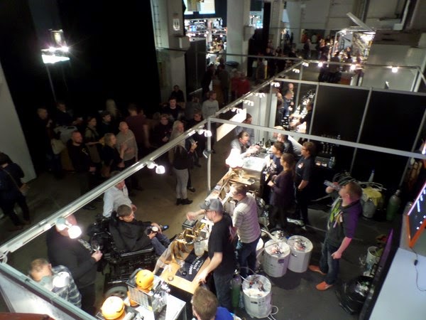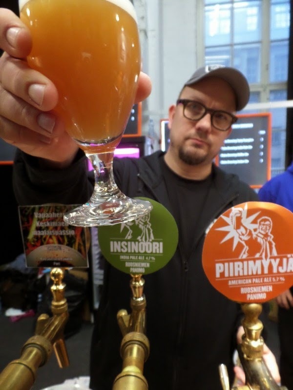 Siitä sitten lähdin kävelemään taas ympäriinsä ja pysähdyin Stallhagenin tiskille, jossa heidän panimomestarinsa Mats Ekholm väänsi hanoista olutta laseihin. Jäin pitkäksi toviksi juttelemaan hänen kanssaan ja samalla maistoin Jolly Bockia ja Baltic Porteria. Rupattelutuokion jälkeen Pikkulinnun tiskiltä hakemaan Nøgne Ø 100% Peated, joka oli aika makupommi. Turvetta, tervaa ja savua. Mainio savuolut, joka eroaa huomattavasti Bambergin savuisista herkuista. Näiden jälkeen Diamondin tiskiltä BrewDogin Abstrakt AB:16 maistoon ja ihan ok Quadrupel. Ei yllä lähellekään Rochefortin kymppien tai Westy kakstoistasten rinnalle, mutta ihan jees. Moestue & Caskin tiskillä oli myös saatavilla skotlantilaisen koirapanimon olutta ja siellä oli ruotsalaisen CAP Breweryn kanssa kollaboraationa tehty Black IPA nimeltä CAP DOG! Alkoholi puskee hieman liikaa esille, mutta muuten kokonaisuutena oikein toimiva BIPA.