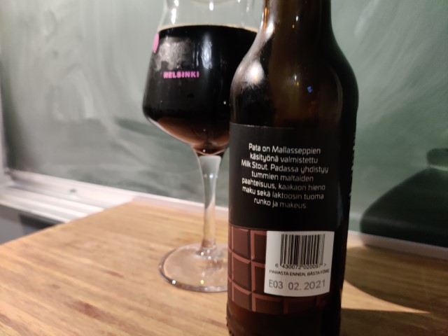Kävin kesälomalla Naantalissa vierailemassa MallasSepät -panimolla ja sieltä mukaan tarttui tämä arvioinnissa oleva Pata Milk Stout.