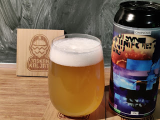 Ominous jatkaa samaa #OFFTHEWALL -sarjaa, kuten äskeinenkin olut ja etiketin hoitaa sama taiteilija. Tämä olut on Citralla ja Ekuanotilla humaloitu 6,9 % IPA.