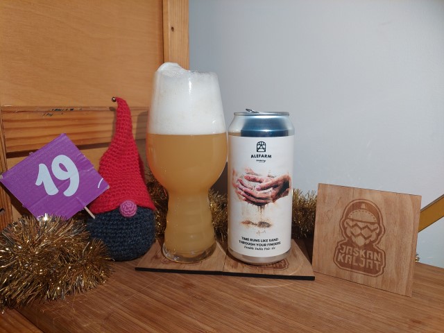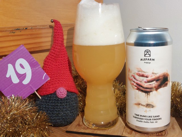 Alefarm Brewingin Time Runs Like Sand Through Your Fingers on seuraavana maistossa ja luukku on numeroltaan 19. Olut on 8 -prosenttinen tupla IPA, missä kuivahumaloinnin hoitelee Topaz, Mosaic ja Citra BBC. Tölkin etiketti on kyllä hemmetin hieno ja olutkin osui nätisti kohteeseen.